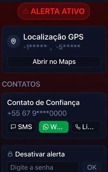 ⚠️Aviso: Este aplicativo NÃO substitui serviços de emergência oficiais como Polícia, Bombeiros ou Resgate. Em situações de risco grave, sempre acione os serviços oficiais primeiro.